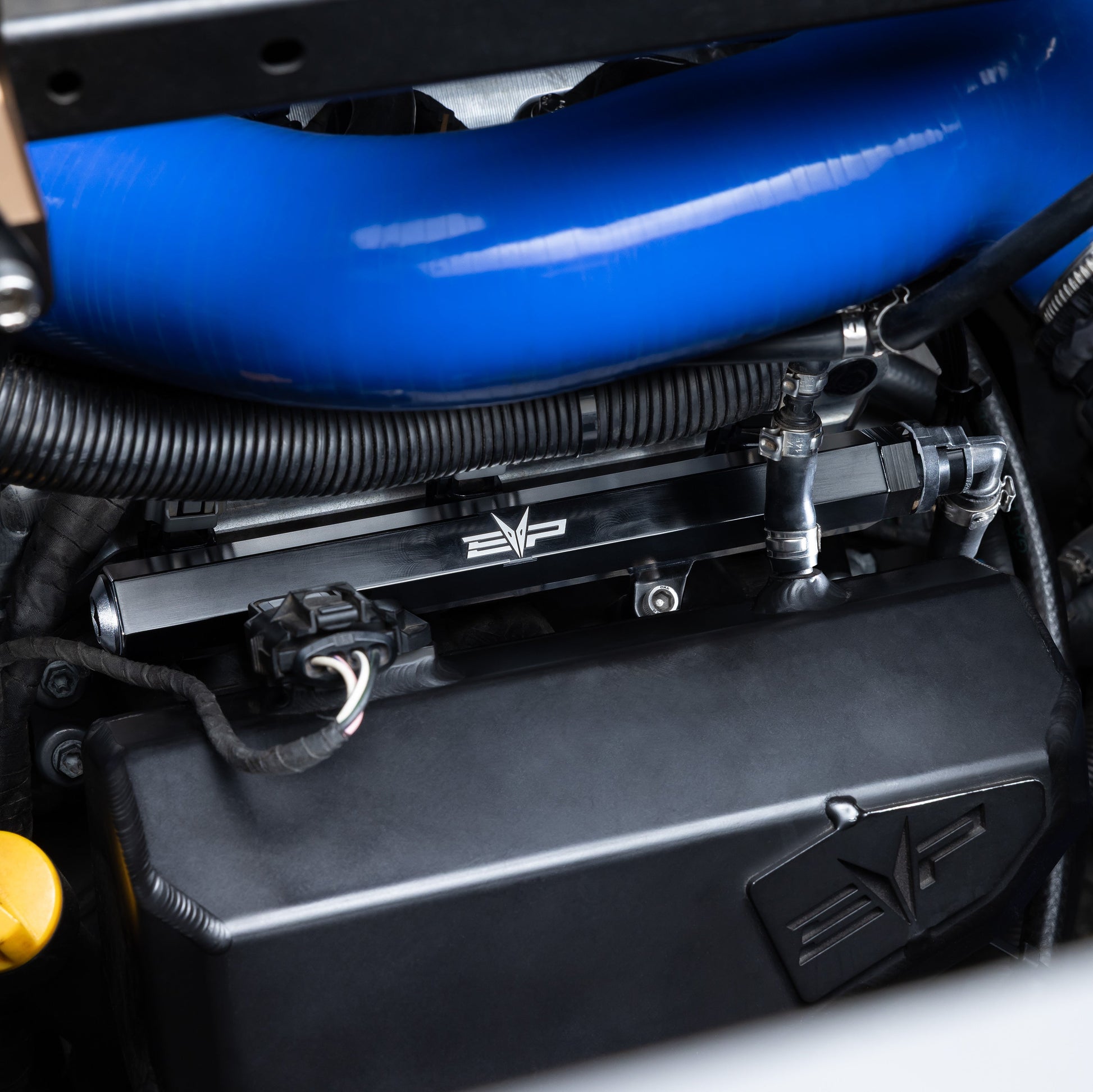- EVP 6061 T6 aluminum fuel rail over OEM brittle plastic fuel rail
