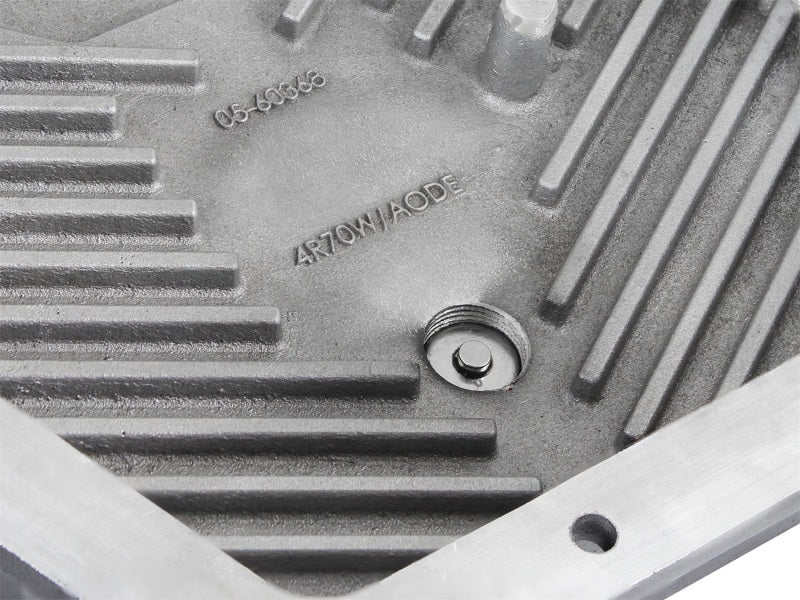 aFe POWER Street Series deep transmission pan brings performance engineering to the protection of your trucks transmission. This transmission pan has additional capacity for 2 more quarts over stock at the factory line, a magnetic drain plug and a 1/8" NPT port for your temperature sensor. Built-in internal and external fins transfer heat from the fluid to the outside air for maximum cooling. This transmission pan is constructed out of durable die-cast A356 aluminum with reinforced ribs and a raw finish with machined accents for maximum strength and styling.