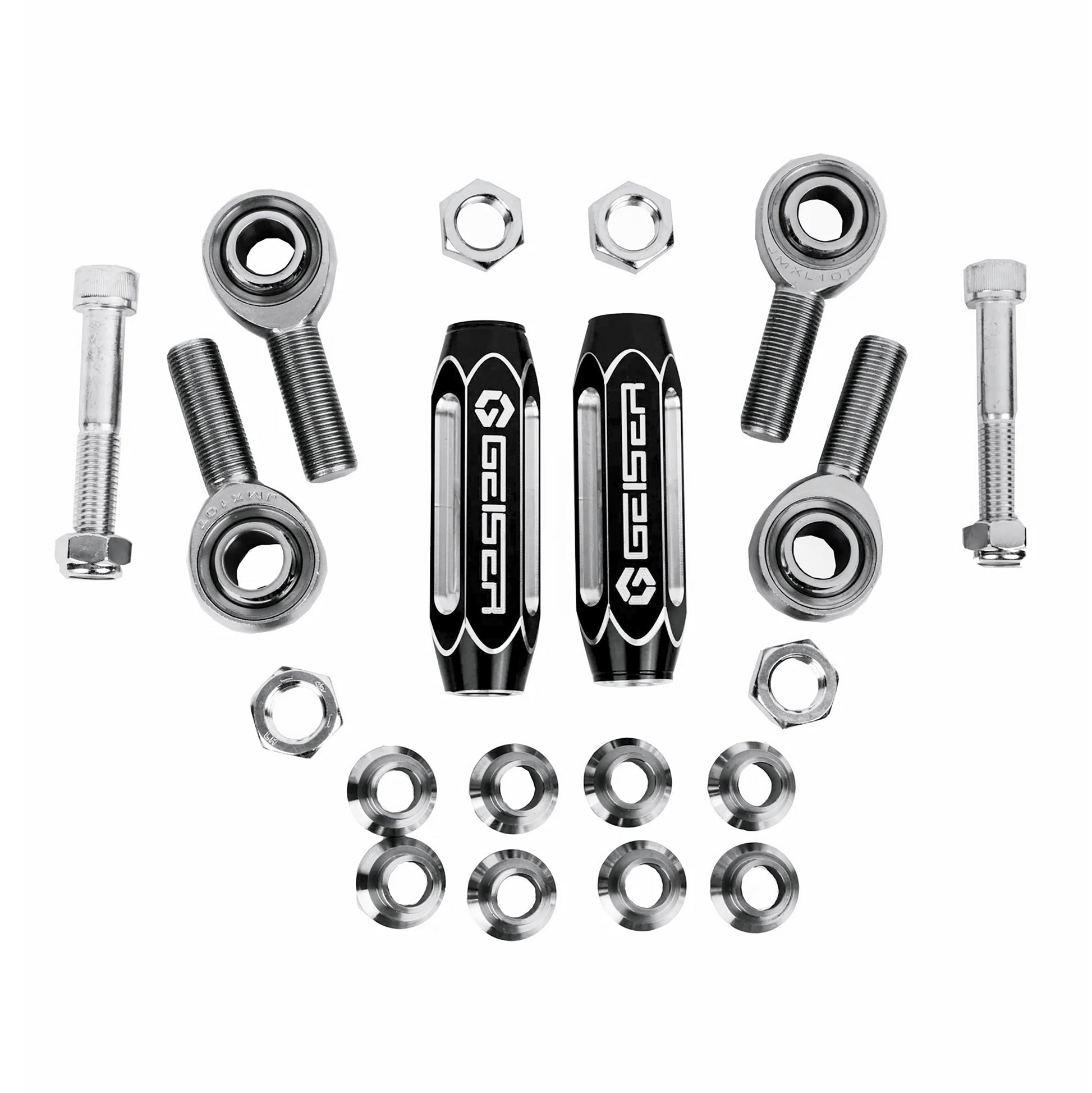 Geiser performance Can-am X3 Rear Sway Bar Links are the perfect combination of performance and style with a sleek black anodized finish with machined edges constructed from 6061 billet aluminum. This kit uses heavy duty 5/8" rod ends and AISI 304 stainless steel high angle spacers. Works with both stock and aftermarket trailing arms.