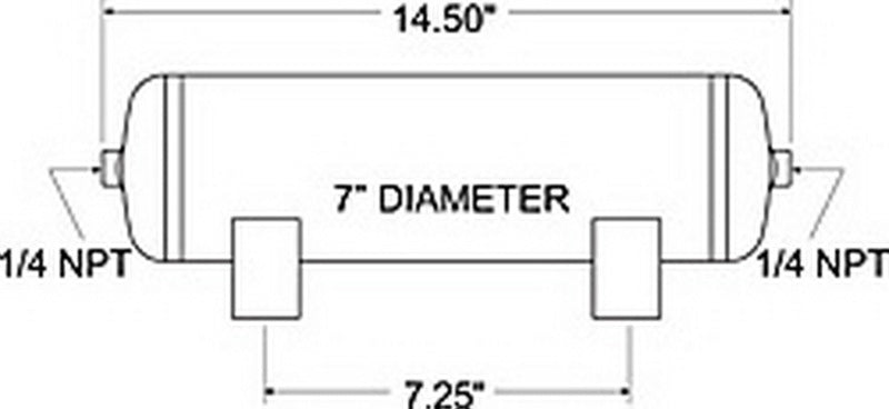 This Firestone air tank provides a source of compressed air for an air spring system. Tank has 2-gallon capacity and (2) 1/4 in. NPT ports. Tank is enamel coated to resist corrosion, tested to be SAE J10 compliant and capable of 150 psi. Features: Provides compressed air source for an air helper spring system Allows for faster inflation of air springs Holds 2 gallons of compressed air Includes 1/4 in. NPT ports (2) Steel tank with brass fittings Resists corrosion with internal and external enamel coating Is SAE J10 compliant Operates at up to 150 psi of maximum pressure Specs: Tank dimensions: 14.5 in. long x 7 in. diameter Tank capacity: 2 gallons Inflation ports: 1/4 in. NPT PSI: Maximum of 150 2-Year limited warranty