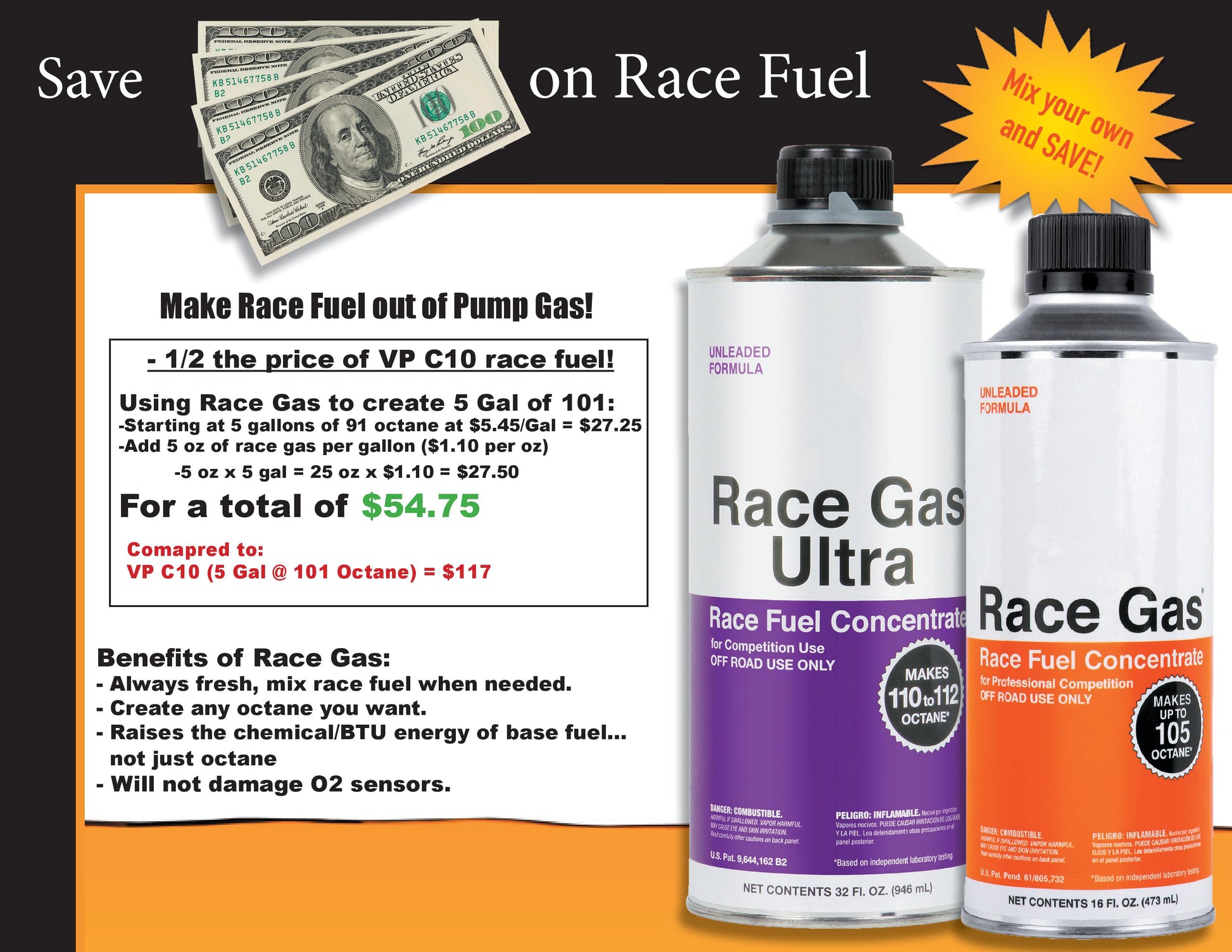 Raises Octane to 112 – Converts premium pump gas into high-octane race fuel.